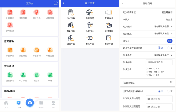 作業(yè)票管理是天元公司智慧安監(jiān)管理平臺中一項重要功能模塊,包括作業(yè)申請、作業(yè)查詢等功能,涵蓋了動火作業(yè)、受限空間、盲板抽堵、高處作業(yè)、吊裝作業(yè)、臨時用電、動土作業(yè)、斷路作業(yè)、檢修作業(yè)9類作業(yè),作業(yè)票系統(tǒng)流程具體分為基礎信息、作業(yè)單位、現(xiàn)場確認、化驗分析、作業(yè)審核、作業(yè)驗收6個步驟,實現(xiàn)了作業(yè)申請—審批—簽字—票證歸檔全過程電子化管理。