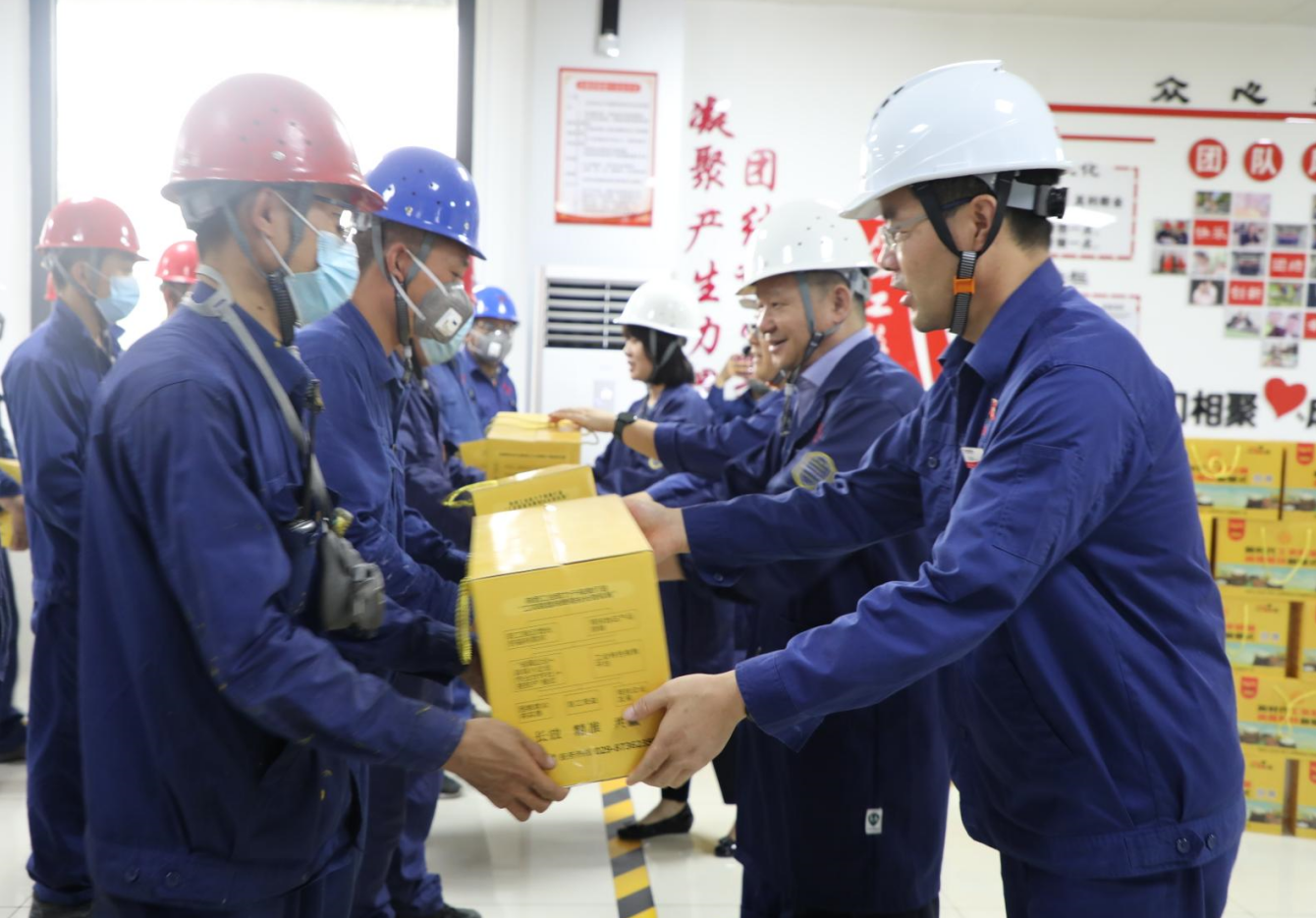 “最近天氣炎熱,神木煤化工公司工會(huì)送來的慰問品都是防暑降溫的食品,對我們來說更實(shí)用,非常感謝領(lǐng)導(dǎo)對我們關(guān)懷!”能源公司電化分公司許麗接過物品時(shí)高興地說道。