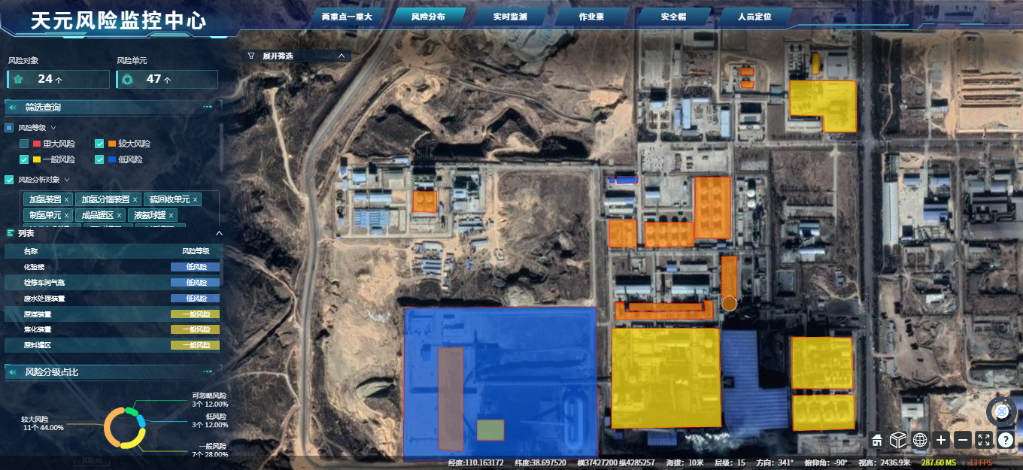 其中,風險分級管控功能模塊利用風險隱患庫的數據支撐,助力基層管理人員的風險辨識登記、評價分級、管控措施制定等一系列風險分級管控工作,實現了對安全管理風險源頭治理、關口前移,全面匯總管理區域內的風險隱患并輸出符合風險分級管控相關管理要素的清單、報表;隱患排查治理功能模塊涵蓋了安全隱患排查治理各環節基本要素和工作內容,通過PC端和手機APP實現以安全隱患排查治理業務為主線的移動線上管理,能夠對隱患排查治理及時、有效跟蹤,實現隱患排查、上報、整改、驗收、記錄留痕、表單存檔閉環管理;數據監測中心功能模塊基于電子地圖進行相關數據、信息展示服務,通過不同的圖層切換,實現危險源、安全隱患、特殊作業分布、有毒可燃氣體監測、視頻監控多種專題圖的可視化形象展示。