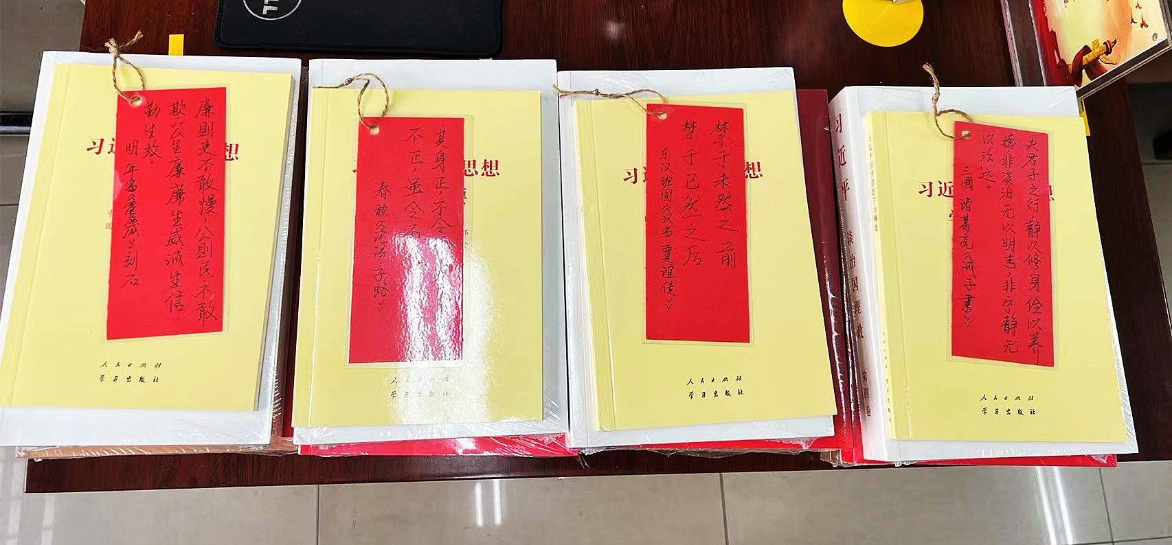 此次廉潔書簽共6張,和《習近平談治國理政》(第四卷)《百年初心成大道 黨史學習教育案例選編》《中國共產黨宣傳工作簡史》《習近平經濟思想學習綱要》等書籍一起送到了黨員干部手中,書簽主要包含修身、內省、廉潔、用權等內容,旨在通過潛移默化的方式提醒黨員干部們遵守黨規黨紀,時刻規范自己的言行舉止,永葆清正廉潔本色,助推泰和公司各項工作提質增效,為踐行清廉國企營造良好氛圍。