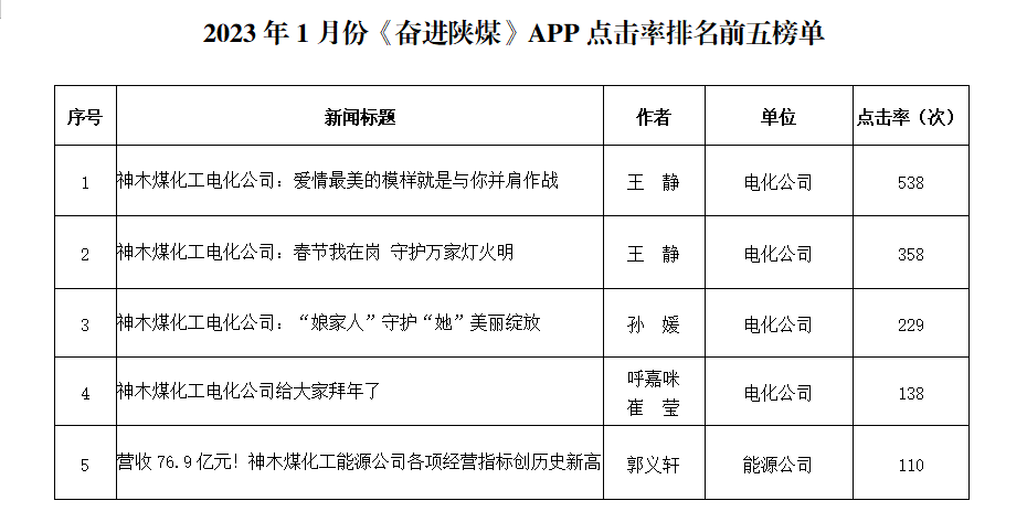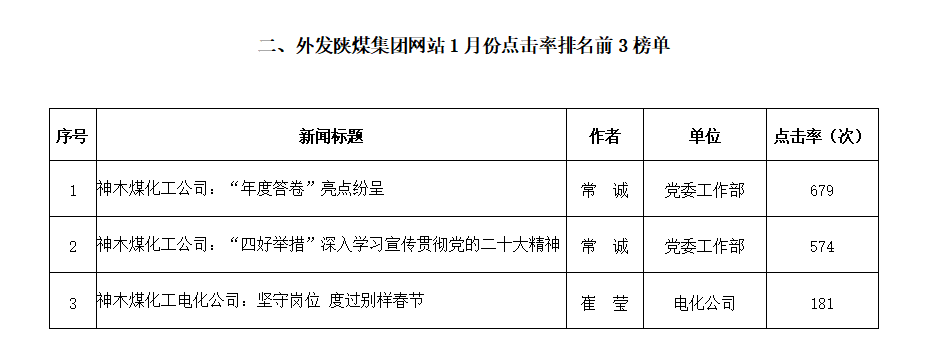 關于2023年1月份神木煤化工公司發(fā)稿及優(yōu)秀稿件評選情況的通報