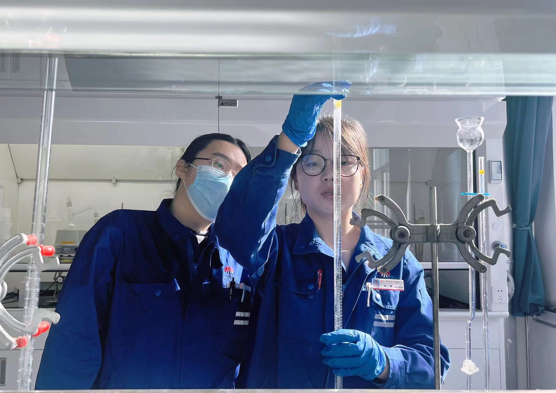富油公司質量檢驗監督部化驗工王婕:陽光普照,春色宜人,她開始了忙碌的-天,接樣、過濾、滴定、稱量、比色.…有條不紊的進行著。