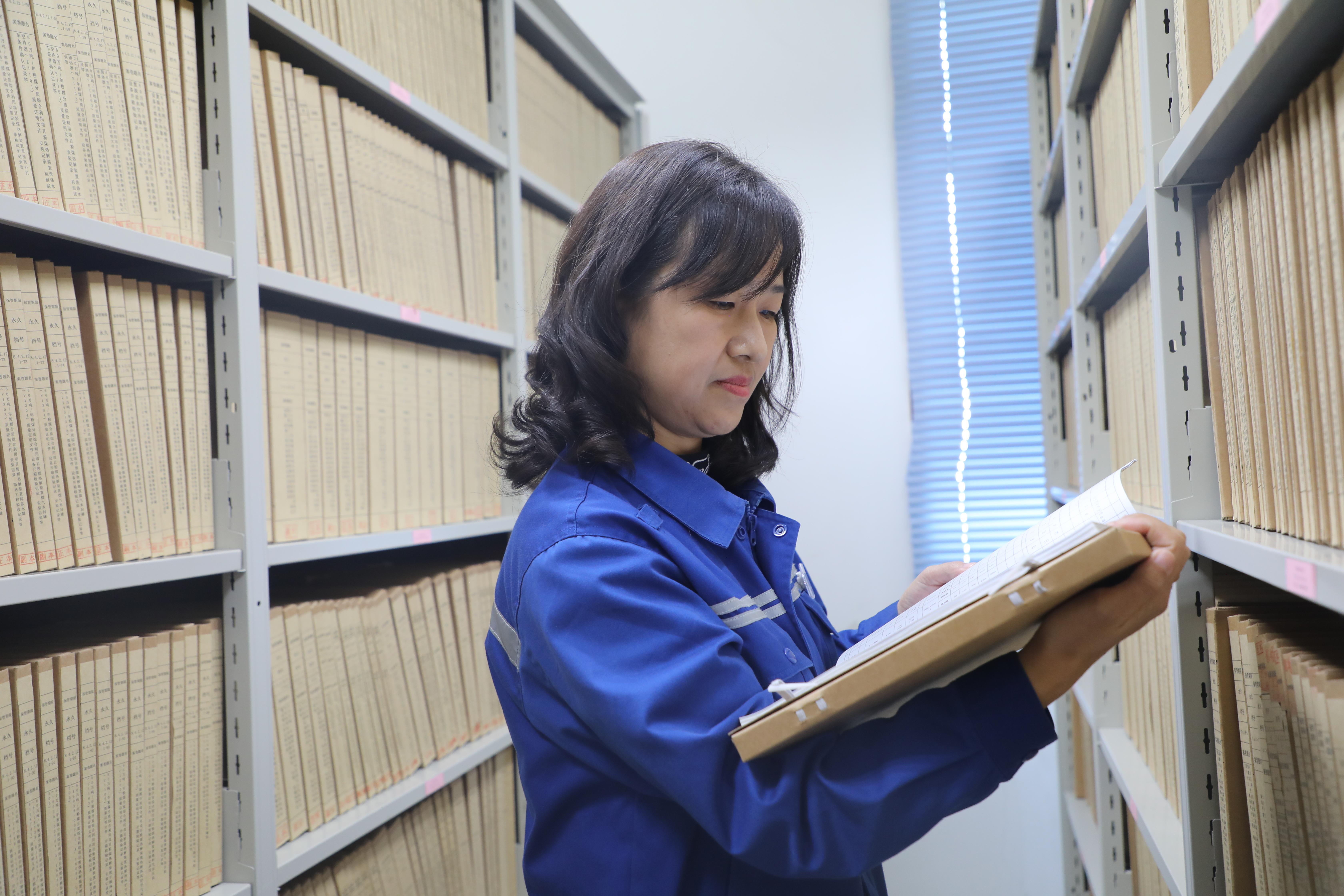 綜合辦公室楊彩艷為相關(guān)人員調(diào)閱工程檔案資料