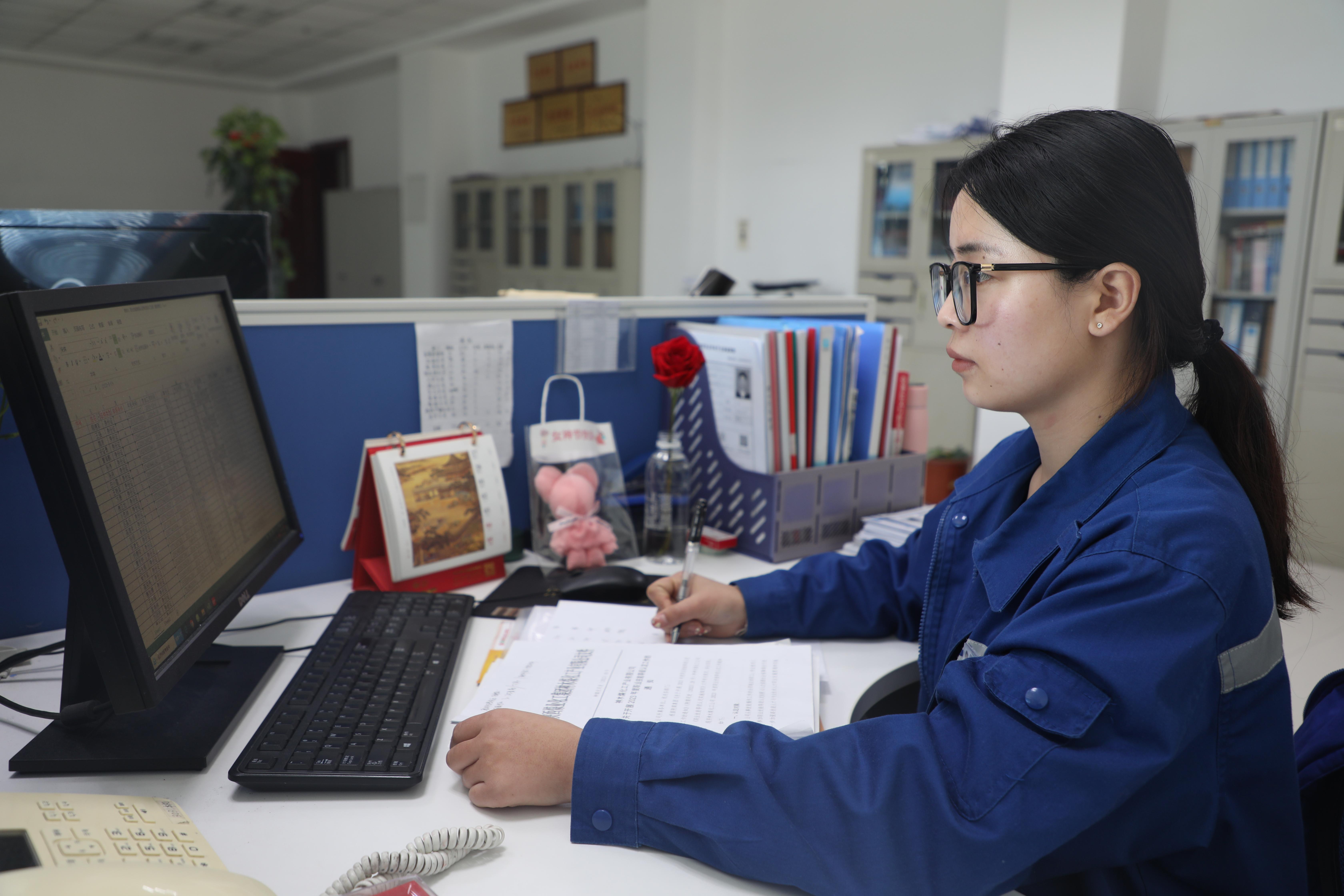 人資企管部楊小芳在匯總職業(yè)技能等級報名表