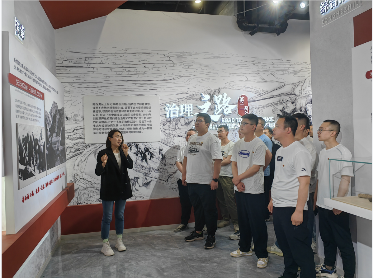 團員青年們首先參觀了高西溝水保生態教育基地,了解了高西溝村在四任黨支部的帶領下,通過實行“三三制”,治山、治溝、治水、退耕還林,把窮山溝治理成山清水秀林茂的“陜北小江南”的奮斗歷程。在龍頭山山頂,大家現場聆聽了習近平總書記在高西溝村考察時的情景,用心感受高西溝村踐行“綠水青山就是金山銀山”的理念,推進生態治理所取得的治理成效。