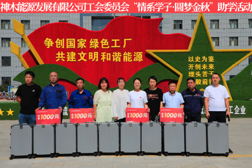 8月22日,神木煤化工能源公司工會開展“情系學子·圓夢金秋”助學活動。對即將邁入大學的趙曉峰等15名學子贈送愛心拉桿箱及慰問金1.5萬元,表達了能源公司黨政工的殷切希望和美好的祝福。