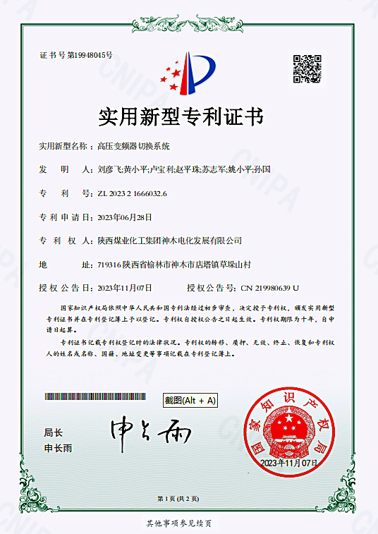 近日,電化公司新增“高壓變頻器切換系統(tǒng)”“熱電廠生活污水回收系統(tǒng)”兩項技術改造成果轉化專利,并頒發(fā)了實用新型專利證書。
