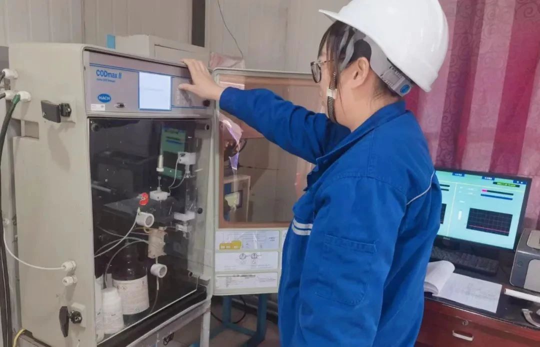 每天在上班前,王春麗都會(huì)根據(jù)工作任務(wù)整理所需的材料和工具,一次把工具帶齊,兩個(gè)工具包看著多,但省去了來(lái)回跑班房的麻煩。今天她要在水質(zhì)在線(xiàn)監(jiān)測(cè)站做氨氮、COD、PH計(jì)比對(duì)。根據(jù)規(guī)范,外排水采樣泵要移至巴歇爾槽流量計(jì)平流段前段,避免采樣泵采樣期間影響流量數(shù)據(jù)。這便需要短接儀表閥線(xiàn)纜,測(cè)試儀表閥是否連通。儀表閥接線(xiàn)盒蓋貼合很緊,需要費(fèi)點(diǎn)力氣才能打開(kāi),使勁時(shí),她秀眉微微蹙在一起。王春麗用上了各種撬棍工具,在纖弱的胳臂帶動(dòng)下,接線(xiàn)盒的螺絲被扳手一點(diǎn)一點(diǎn)擰緊。測(cè)完COD,她又前往分餾塔間平臺(tái),穿樓梯時(shí)要經(jīng)過(guò)密集的腳手架,她小心翼翼爬越、穿過(guò)孔洞,尋找適合的安全帶系掛點(diǎn),漿洗得干凈藍(lán)色工作褲,不知何時(shí)就蹭上了些灰塵和油污。
