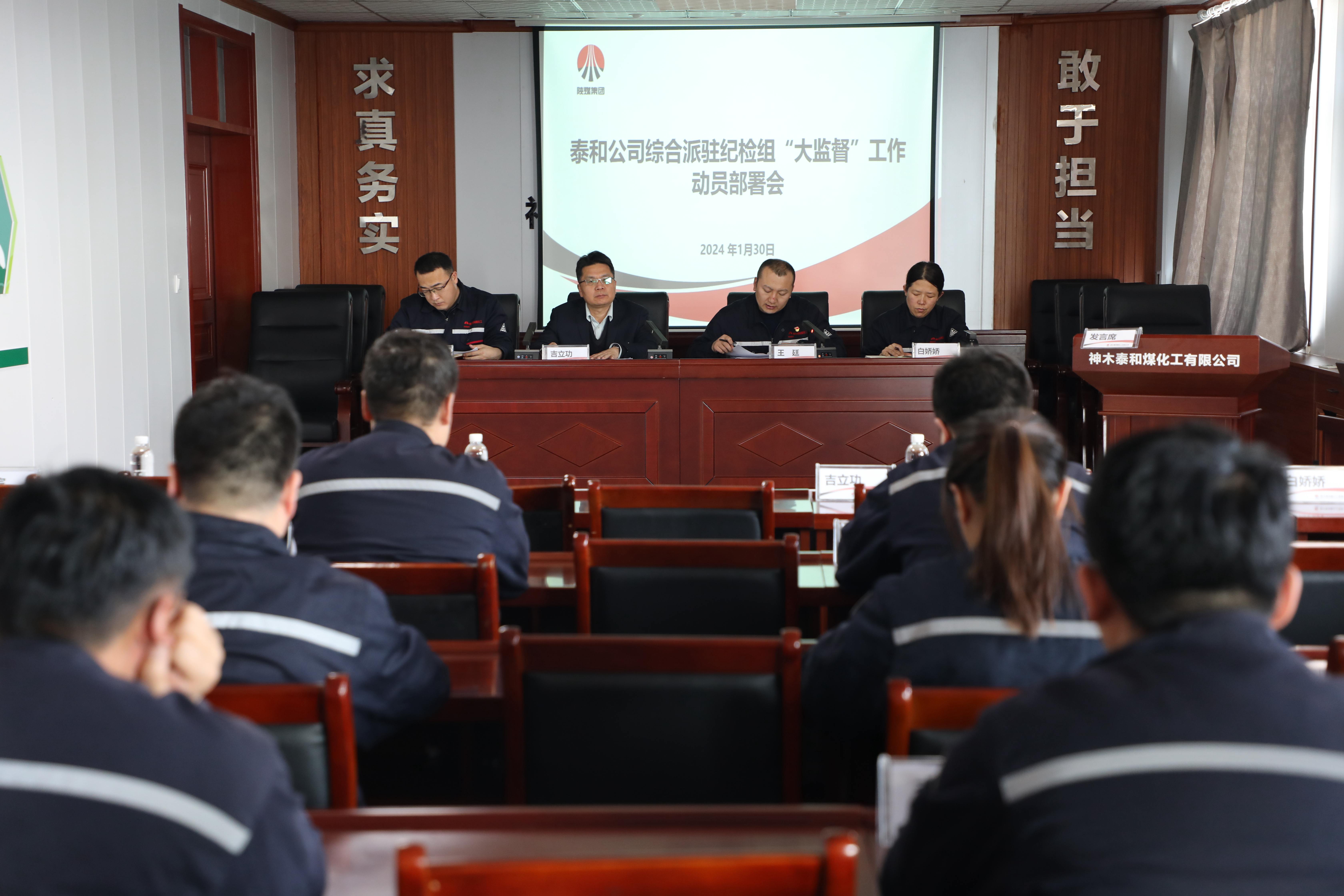 1月30日,神木煤化工泰和公司綜合派駐紀檢組召開構建“大監(jiān)督”體系動員部署會。神木煤化工紀委副書記、泰和公司綜合派駐紀檢組組長吉立功,泰和公司黨總支委員、副總經(jīng)理王廷及在家領導班子成員、中層管理人員、重點崗位人員等參加了會議。