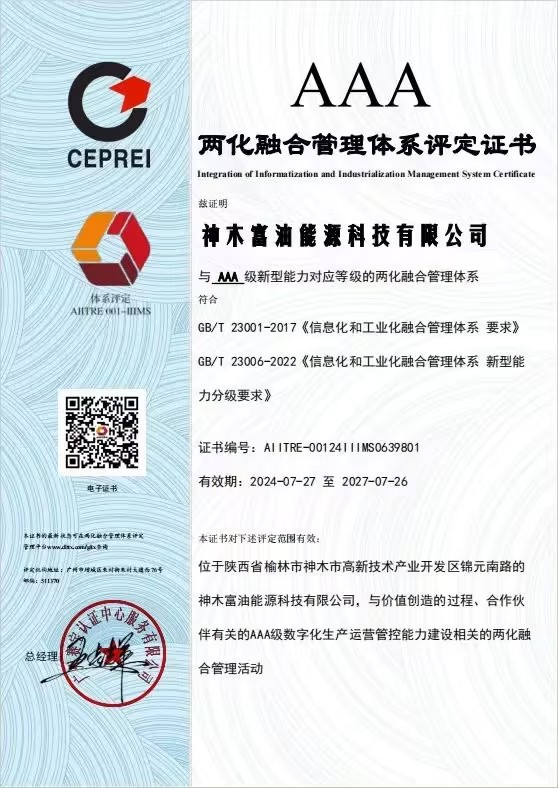 近日,富油公司兩化融合管理體系貫標通過工信部評定審核,正式獲得兩化融合管理體系A(chǔ)AA級評定證書,成為陜煤集團化工板塊首家獲此殊榮的企業(yè)。AAA級是目前兩化融合管理體系開放申請的最高評定等級。