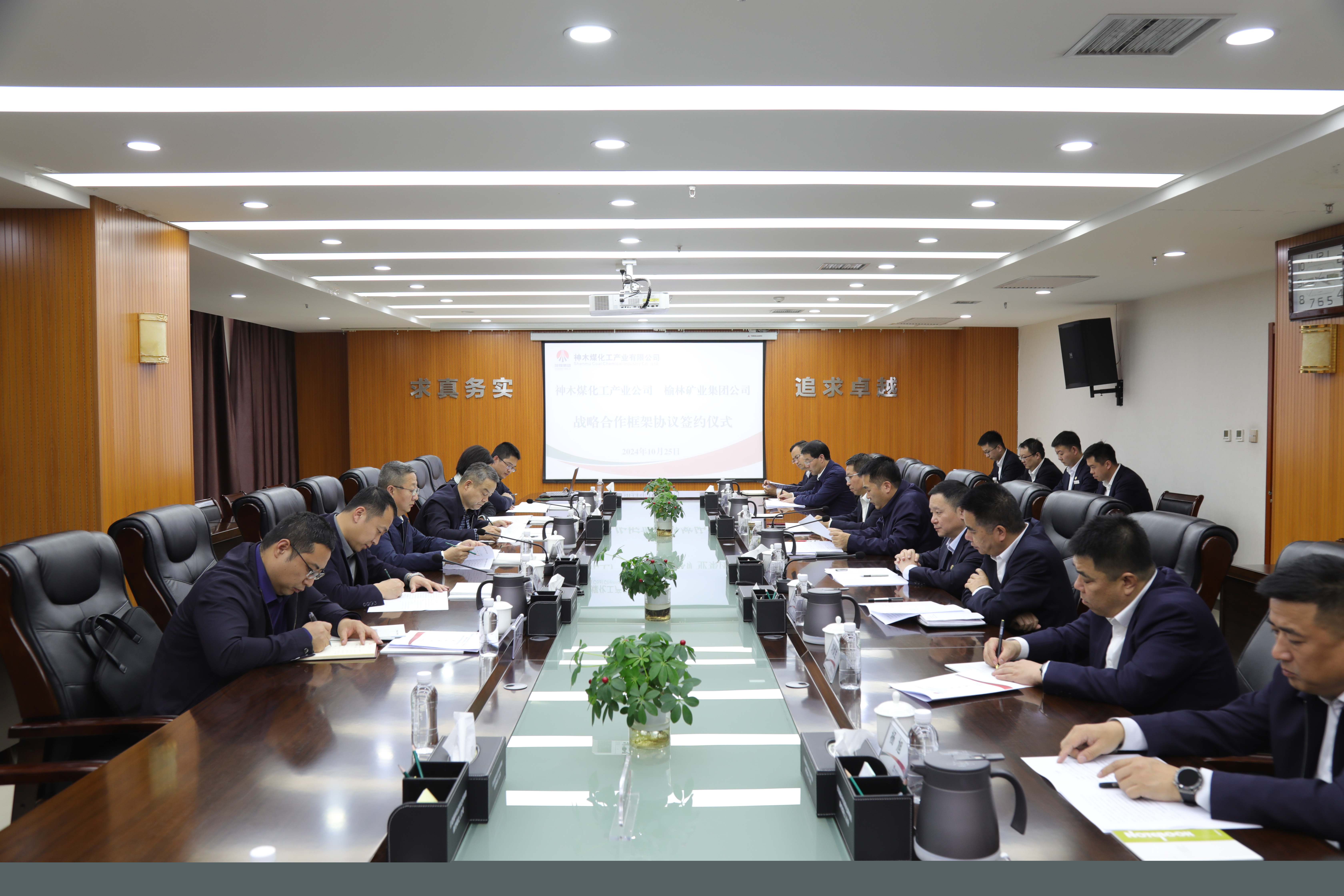 10月25日,公司與榆林礦業集團公司簽署戰略合作框架協議,開啟共謀發展,共話未來的新篇章。榆林礦業集團黨委書記、董事長馮延興,黨委副書記、總經理董昇厚,公司黨委書記、董事長雷宏春,黨委副書記、總經理辛文輝參加簽約儀式。
