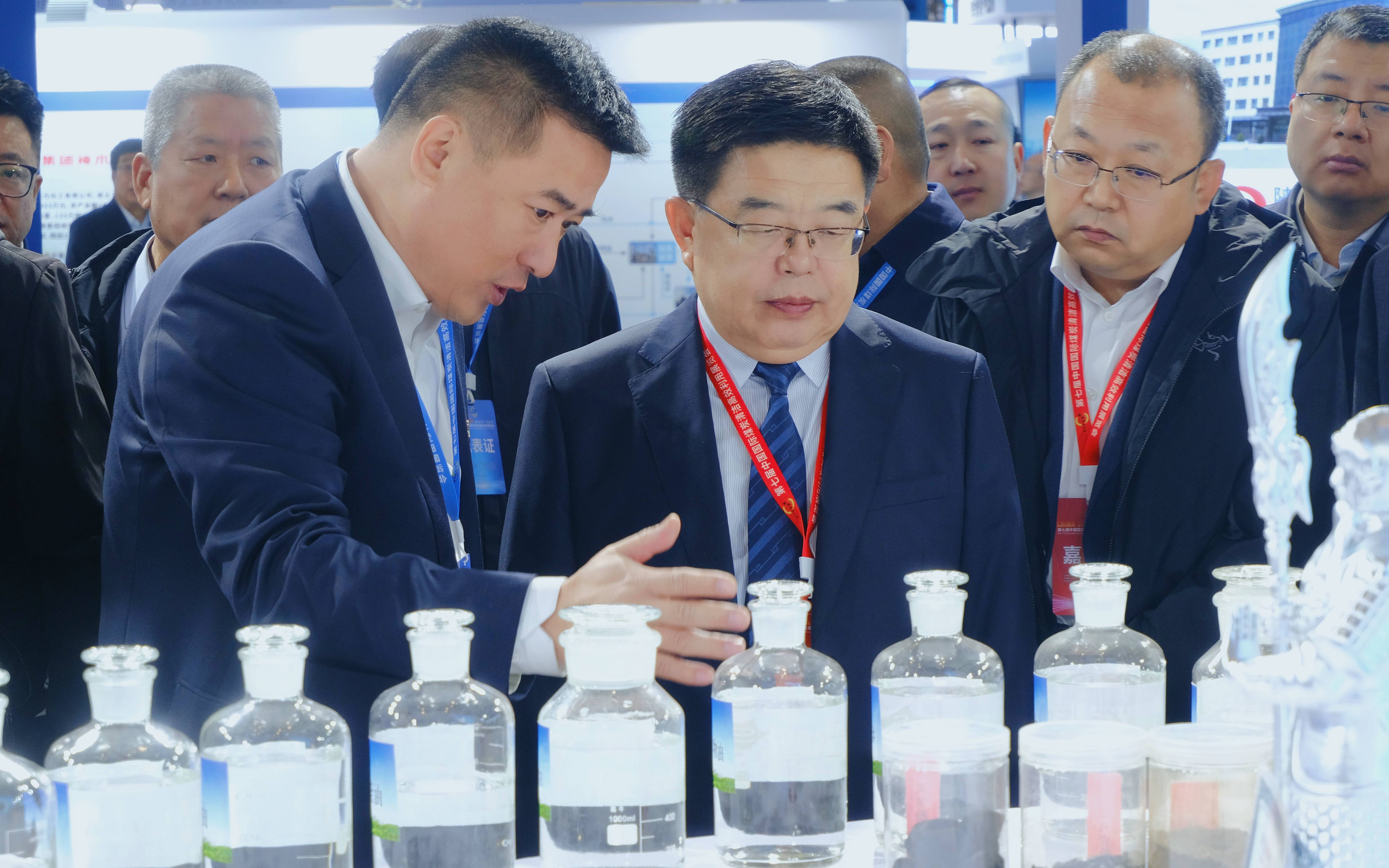 “我們通過對蘭炭生產裝置進行升級改造,進一步提升了蘭炭質量,蘭炭水分可控制在10%左右。同時,我們正加快實施30萬噸/年柴油提質增效項目,預計年底具備試生產條件,項目投用后將進一步優化產品結構,提高組分柴油產品附加值……”展會首日,神木市委副書記、市長段智博帶領神木代表團參觀了公司展位,要求公司要抓住此次機會,充分展示企業科技創新成果和高質量發展新形象。公司黨委書記、董事長楊旭詳細介紹了公司蘭炭生產、發展規劃等情況。