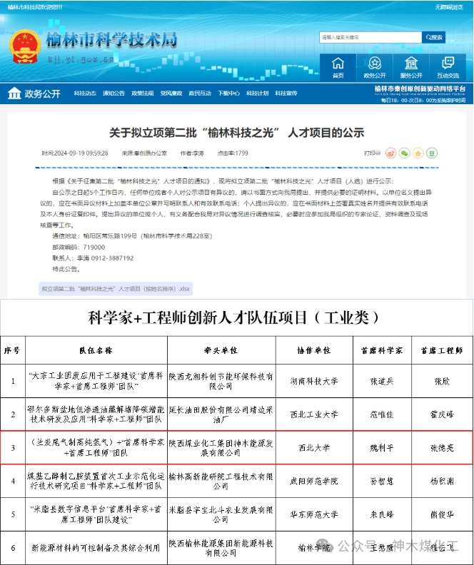 能源公司創(chuàng)新人才項目入選第二批“榆林科技之光”